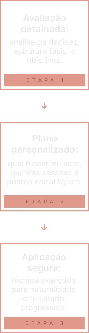 Ele ativa seu próprio colágeno de dentro para fora. Em vez de “preencher” artificialmente, ele estimula a pele a se reconstruir, melhorando flacidez, textura e contorno facial mês após mês.